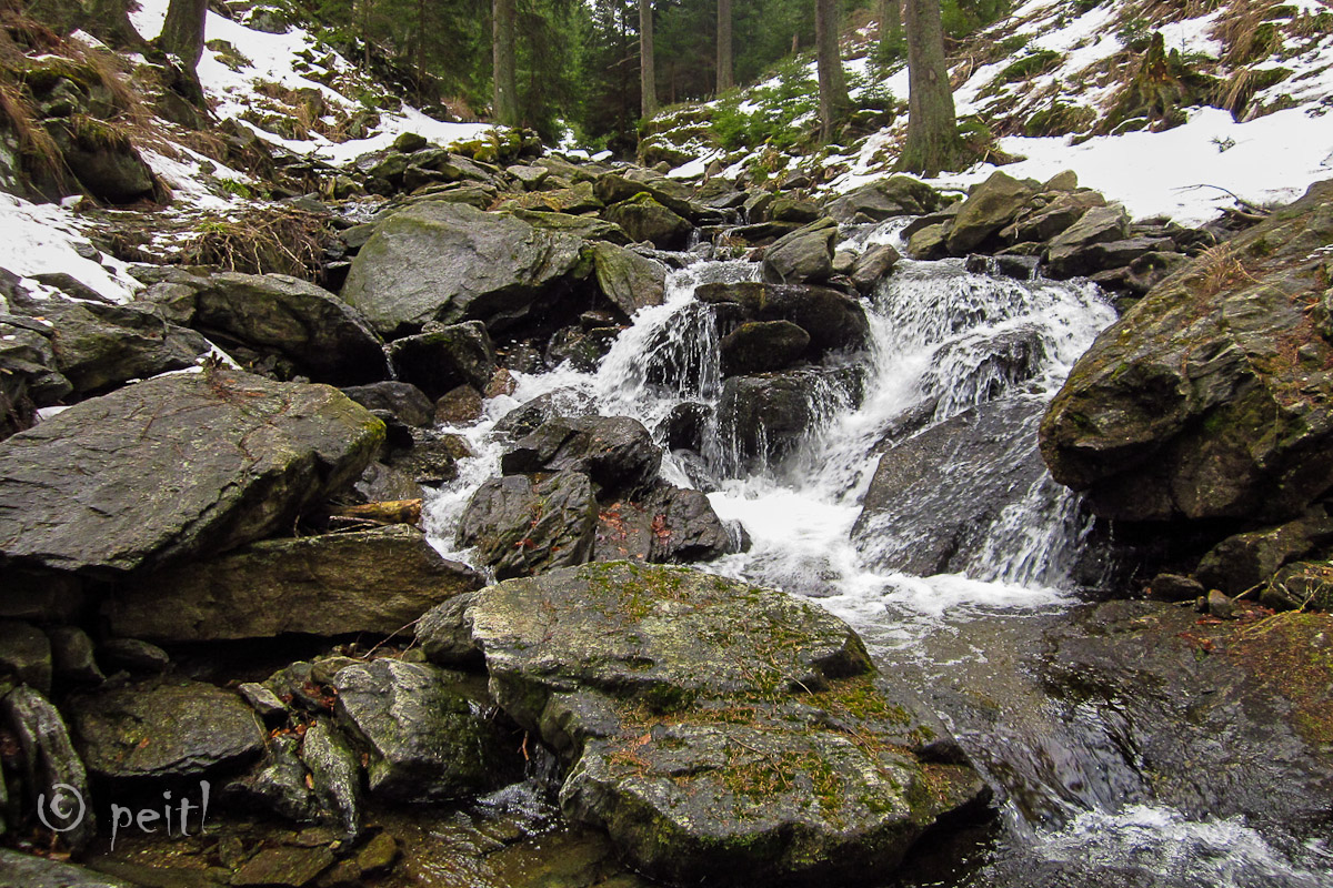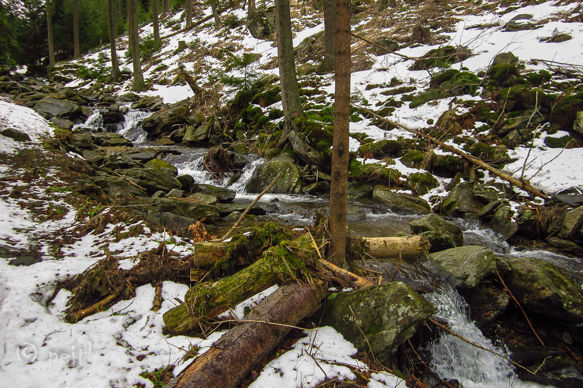Poslední březnová sobotní procházka roku 2012 na trase Jeseník - Rejvíz - Kazatelny - Kristovo Loučení - Pásmo Orlíka - Velké Bradlo - Šumný Potok - Jeseník. Cíl - zjistit, kolik se na hřebenu nachází sněhu se podařilo naplnit :-)